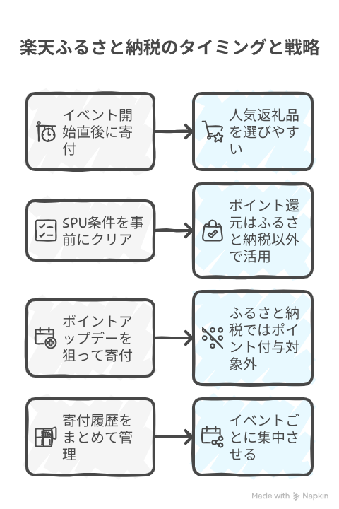 楽天ふるさと納税では、寄付するタイミングによって返礼品の選択肢や満足度が大きく変わります。